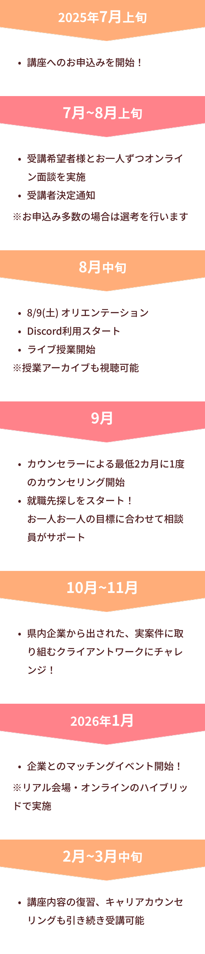 - 受講期間中の定期オンライン面談(2カ月に1回)に加え、 いつでも面談予約できるフォームも完備。